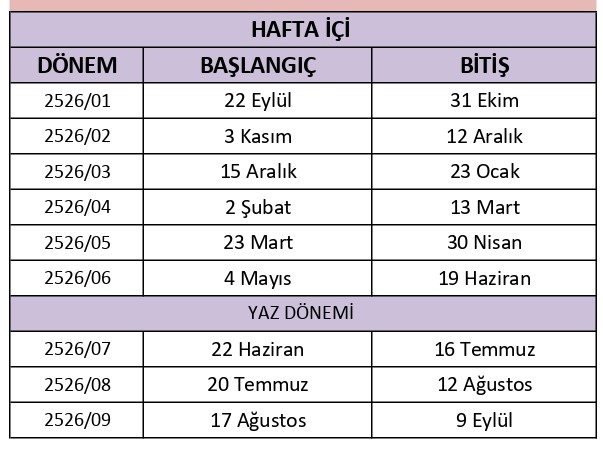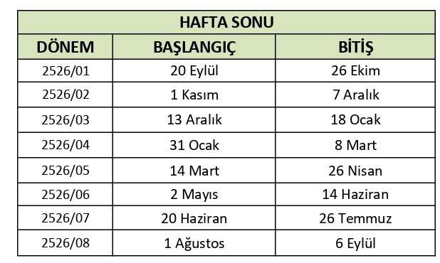 2025 – 2026 Öğretim Yılı Akademik Takvim