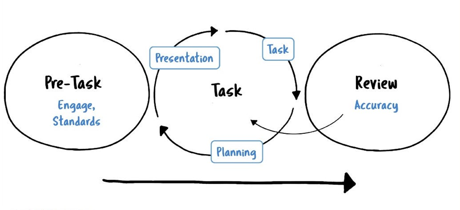 Before students begin with the task, teachers introduce the topic, teach key words and show model example. After the task, it is discussed performance, teacher correct common errors and highlight useful grammar.